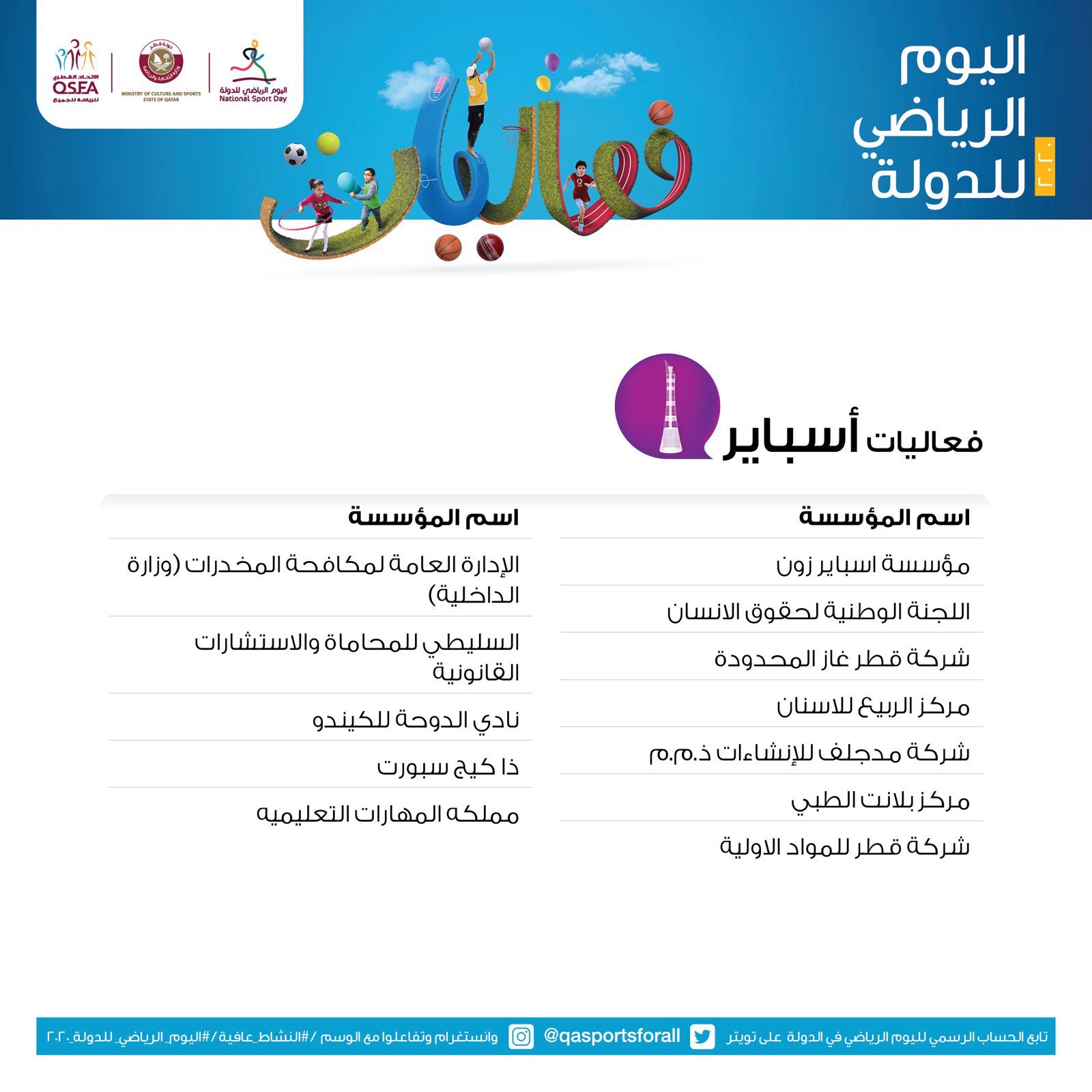 Uzivatel وزارة الثقافة و الرياضة Na Twitteru فعاليات أسباير في اليوم الرياضي للدولة 2020 النشاط عافية